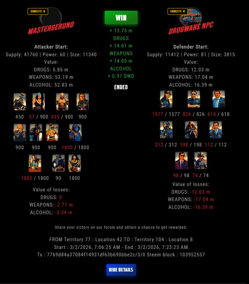 Check my latest fight ! mastergerund vs The Govermentmastergerund (66)in DrugWars • 3 days ago #drugwars-fight #gaming #fight #dw