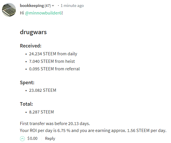 Without investing to much time and avoiding battles so far which would drastically increase the time commitment we have managed to pay back the entire loan used for start up and earn an extra 8.287 Steem so far.