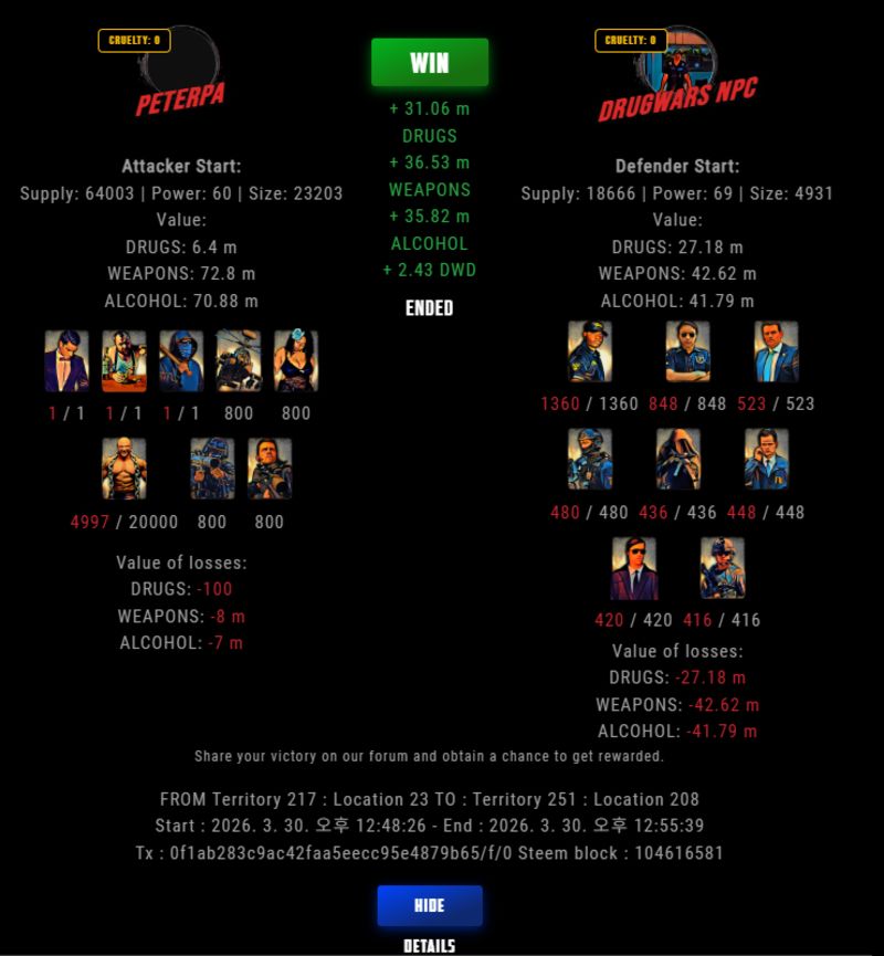 Check my latest fight ! peterpa vs The Govermentpeterpa (74)in DrugWars • yesterday #drugwars-fight #gaming #fight #dw