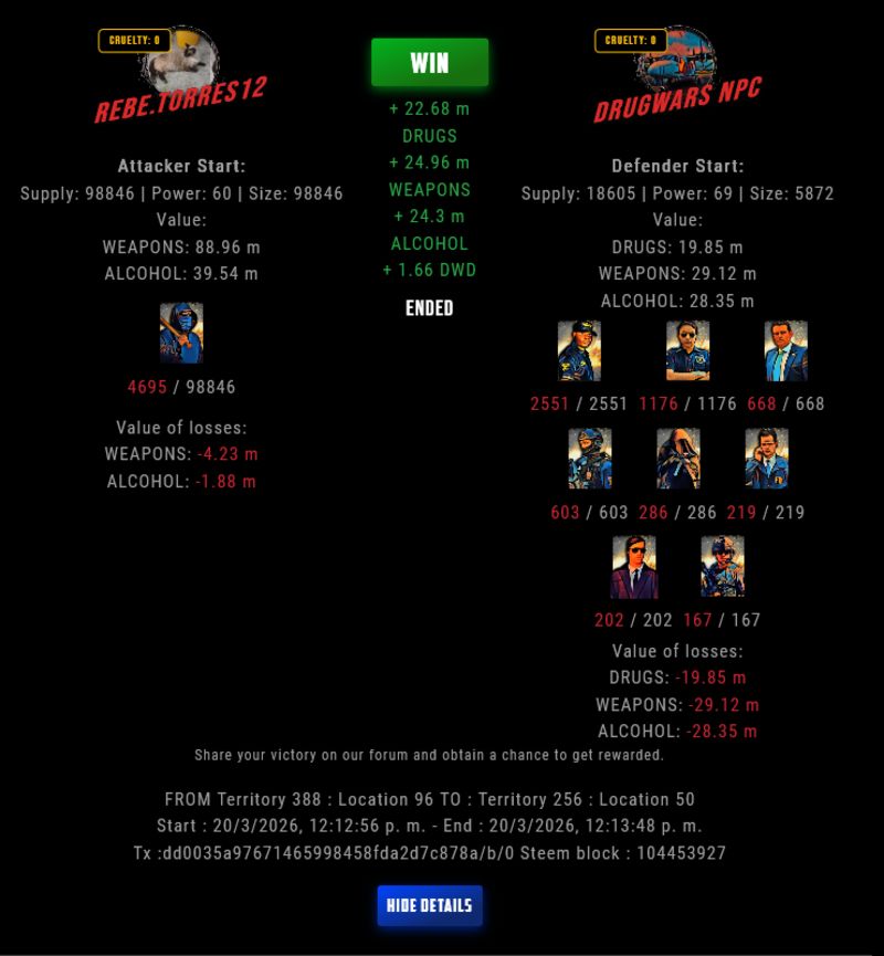Check my latest fight ! rebe.torres12 vs The Govermentrebe.torres12 (66)in DrugWars • yesterday #drugwars-fight #gaming #fight #dw