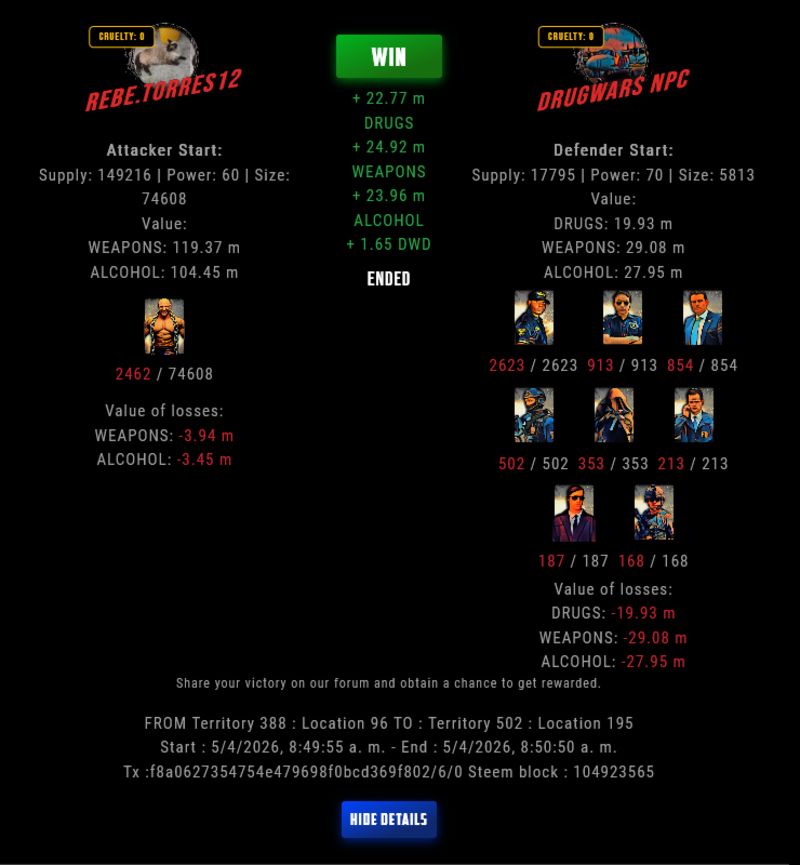 Check my latest fight ! rebe.torres12 vs The Govermentrebe.torres12 (66)in DrugWars • 4 hours ago #drugwars-fight #gaming #fight #dw