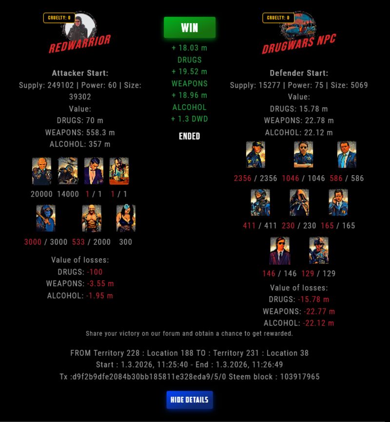 Check my latest fight ! redwarrior vs The Govermentredwarrior (61)in DrugWars • 7 hours ago #drugwars-fight #gaming #fight #dw