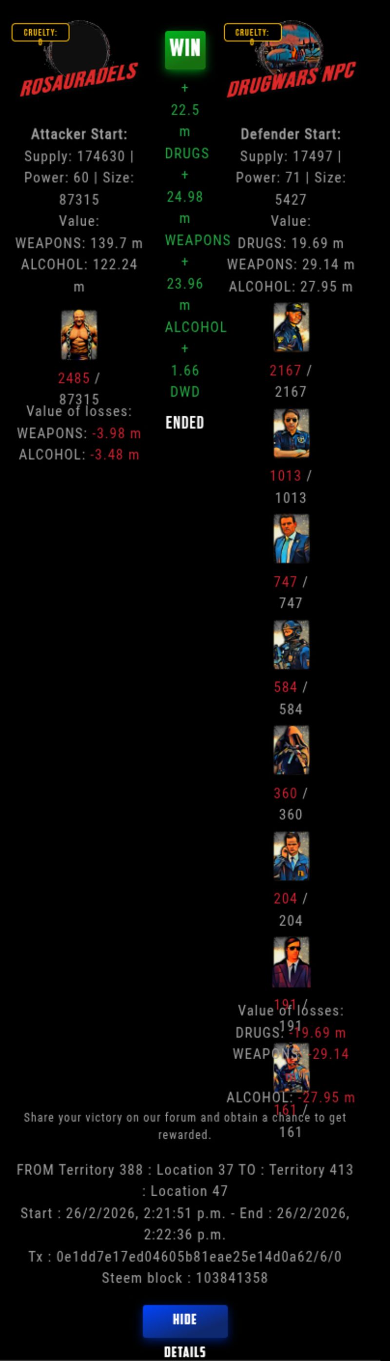 Check my latest fight ! rosauradels vs The Govermentrosauradels (67)in DrugWars • 4 hours ago #drugwars-fight #gaming #fight #dw