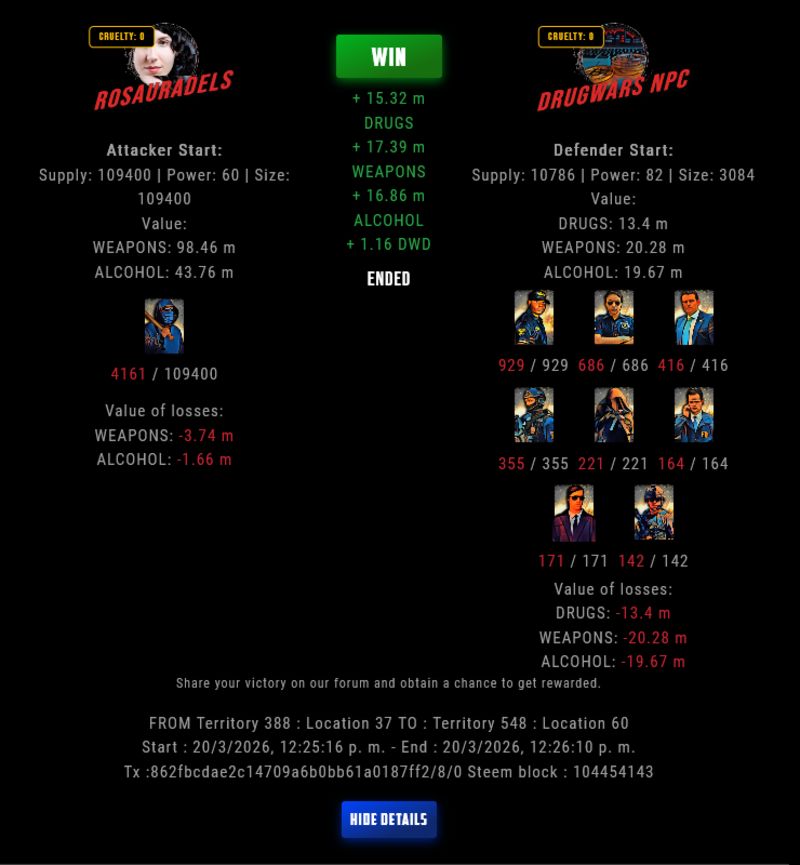 Check my latest fight ! rosauradels vs The Govermentrosauradels (67)in DrugWars • yesterday #drugwars-fight #gaming #fight #dw