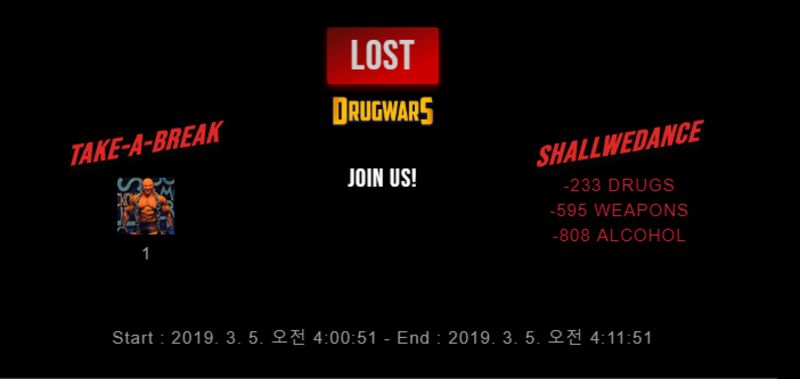 Check my latest fight ! take-a-break vs shallwedanceshallwedance (31)in #drugwars • 7 years ago #gaming #fight #dw