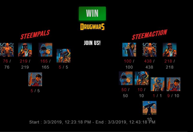 Check my latest fight ! steempals vs steemactionsteemaction (40)in #drugwars • 7 years ago #gaming #fight #dw
