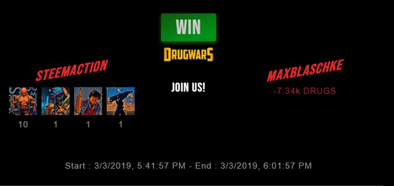 Check my latest fight ! steemaction vs maxblaschkesteemaction (40)in #drugwars • 7 years ago #gaming #fight #dw