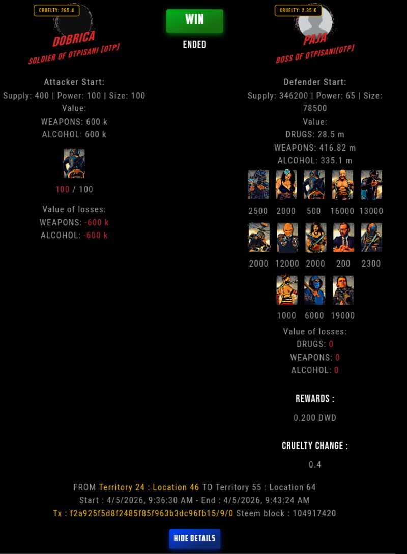 Check my latest fight ! dobrica vs pajatihi (58)in DrugWars • 9 hours ago #drugwars-fight #gaming #fight #dw