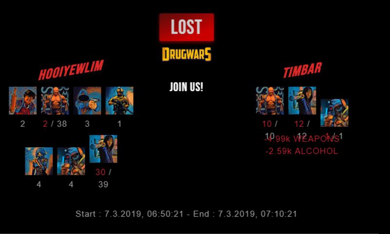 Congratulations @timbar ! Your fight received an upvote of 1% from the King Dealer as incentive for your activity and as a gratitude for your support to the game. Want to know more about DrugWars.io?