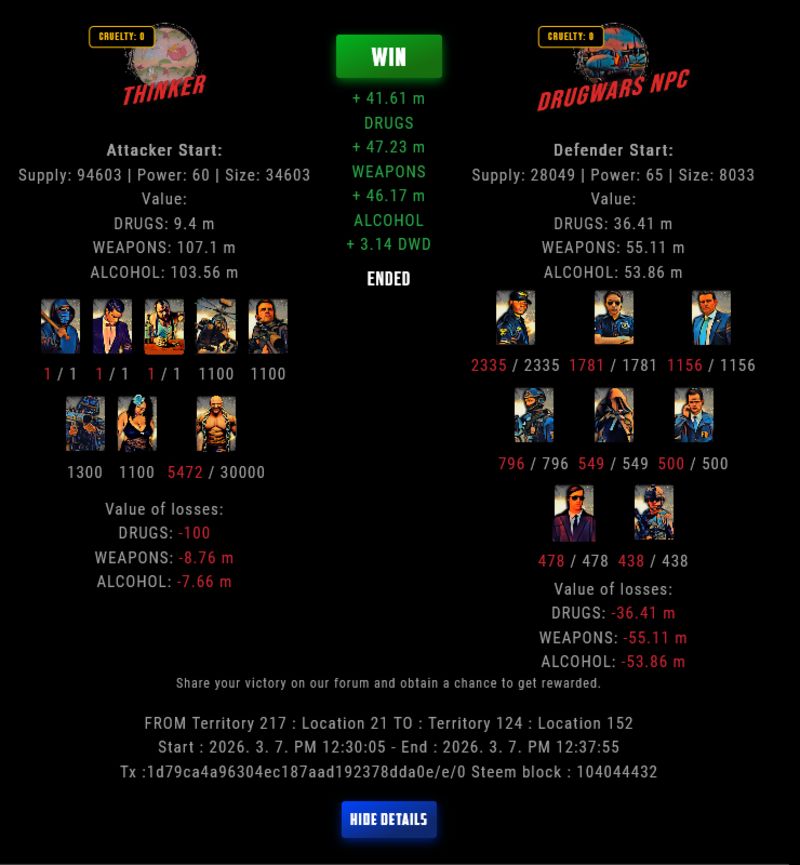 Check my latest fight ! thinker vs The Govermenttinker-bell (67)in DrugWars • 7 days ago #drugwars-fight #gaming #fight #dw