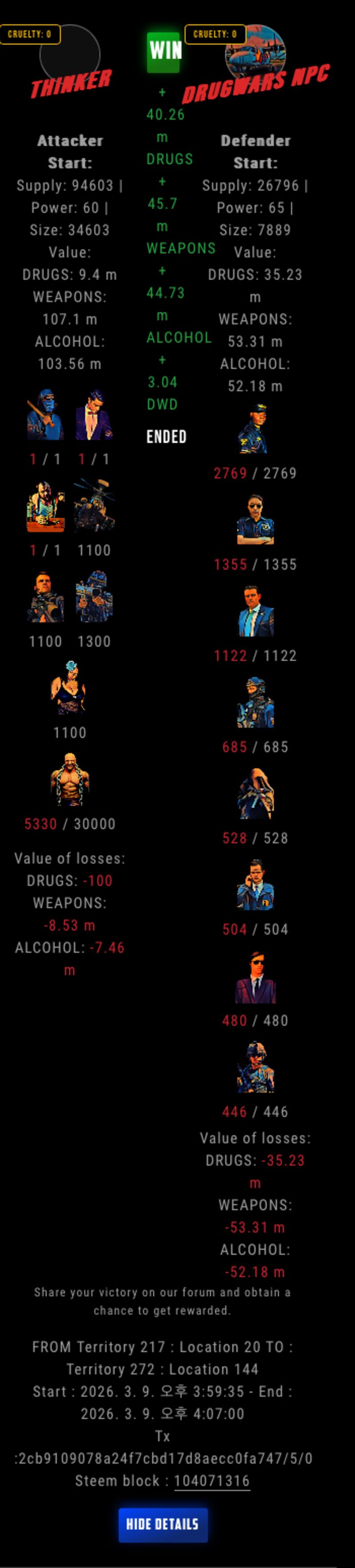 Check my latest fight ! thinker vs The Govermenttinker-bell (67)in DrugWars • 14 hours ago #drugwars-fight #gaming #fight #dw