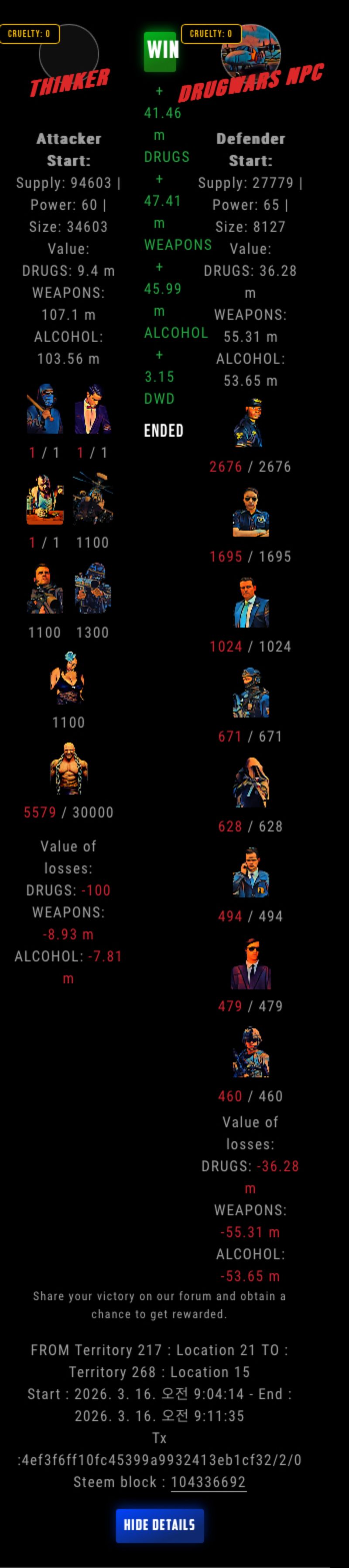 Check my latest fight ! thinker vs The Govermenttinker-bell (67)in DrugWars • 16 hours ago #drugwars-fight #gaming #fight #dw