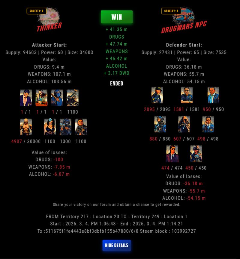 Check my latest fight ! thinker vs The Govermenttinker-bell (67)in DrugWars • 10 days ago #drugwars-fight #gaming #fight #dw