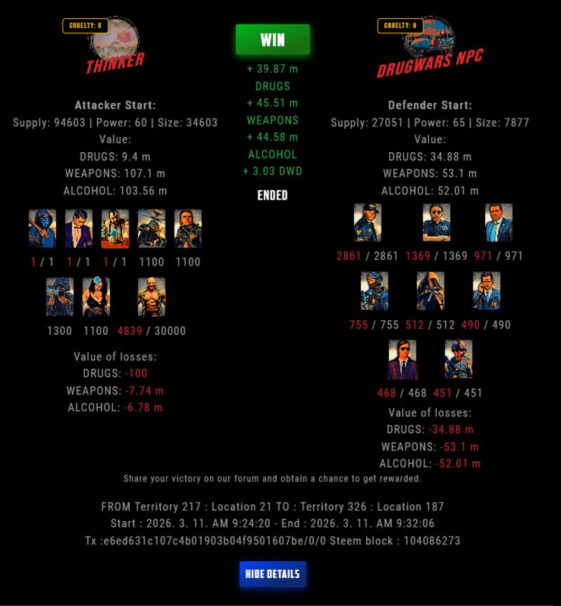 Check my latest fight ! thinker vs The Govermenttinker-bell (67)in DrugWars • 3 days ago #drugwars-fight #gaming #fight #dw