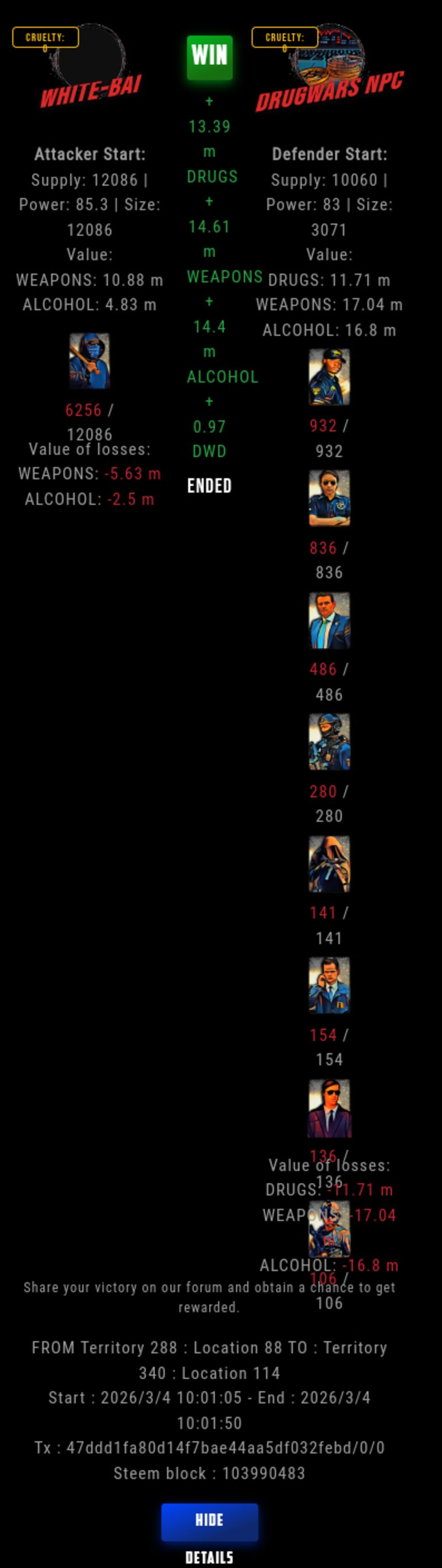 Congratulations @white-bai ! Your fight received an upvote of 57.6% from the Dealer as incentive for your activity and as a gratitude for your support to the game.