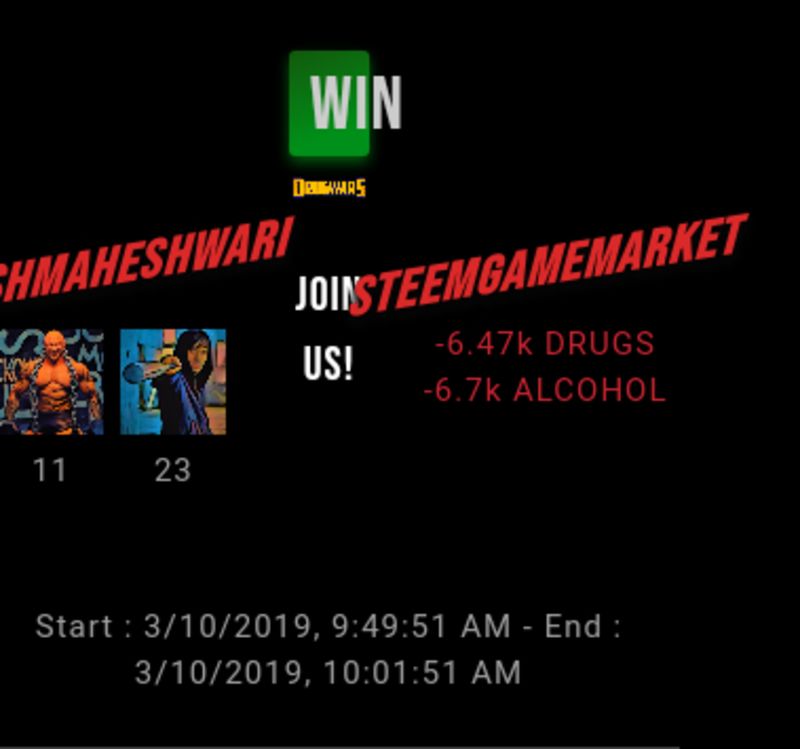 Check my latest fight ! yashmaheshwari vs steemgamemarketyashmaheshwari (32)in #drugwars • 7 years ago #gaming #fight #dw