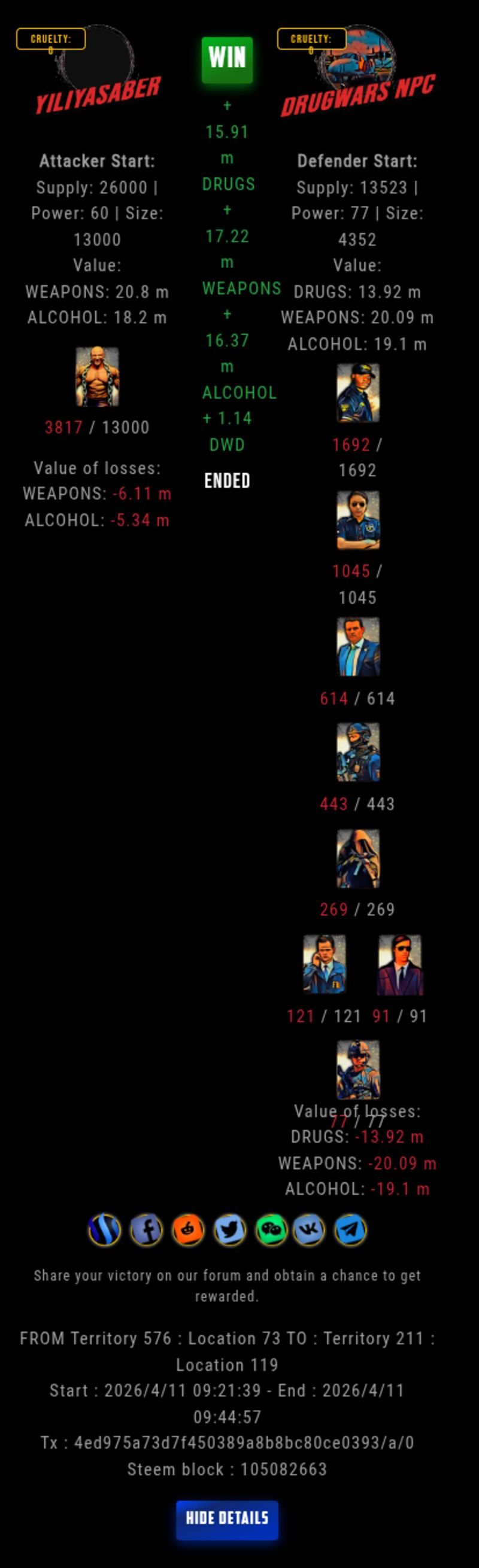Check my latest fight ! yiliyasaber vs The Govermentyiliyasaber (70)in DrugWars • 13 hours ago #drugwars-fight #gaming #fight #dw