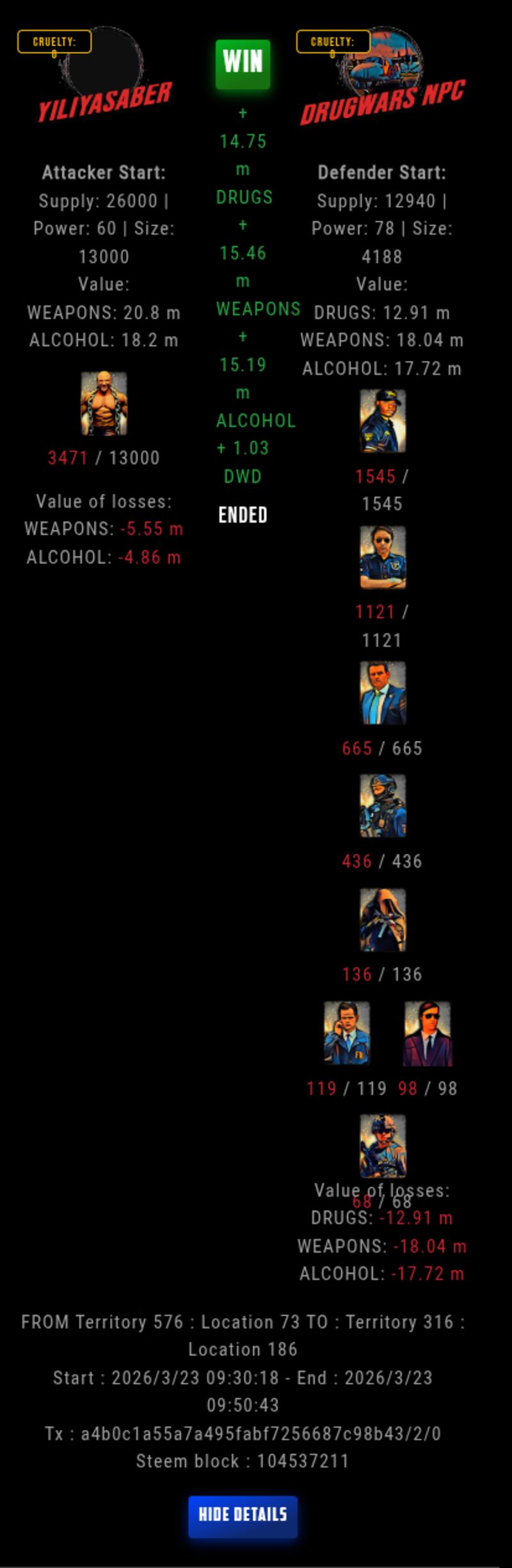 Congratulations @yiliyasaber ! Your fight received an upvote of 50% from the Dealer as incentive for your activity and as a gratitude for your support to the game.