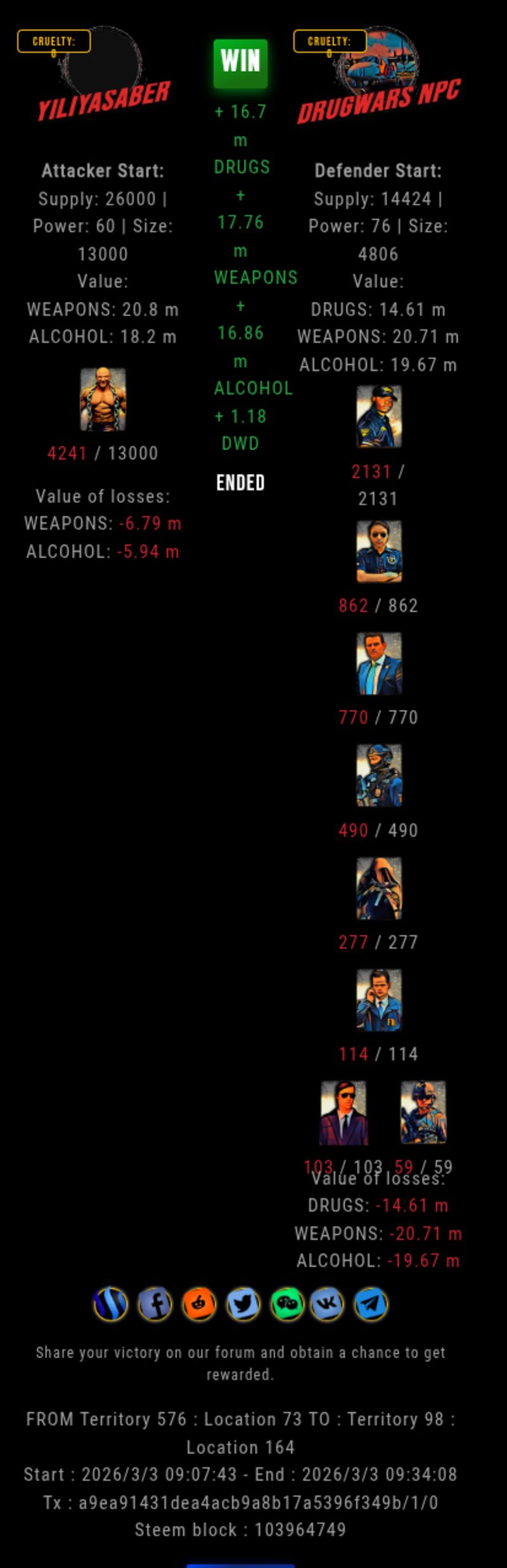 Congratulations @yiliyasaber ! Your fight received an upvote of 49.7% from the Dealer as incentive for your activity and as a gratitude for your support to the game.
