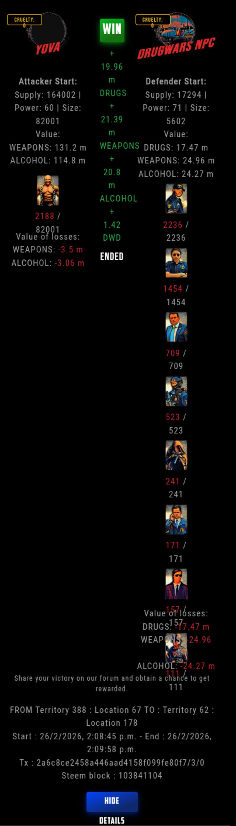 Check my latest fight ! yova vs The Govermentyova (60)in DrugWars • 4 hours ago #drugwars-fight #gaming #fight #dw