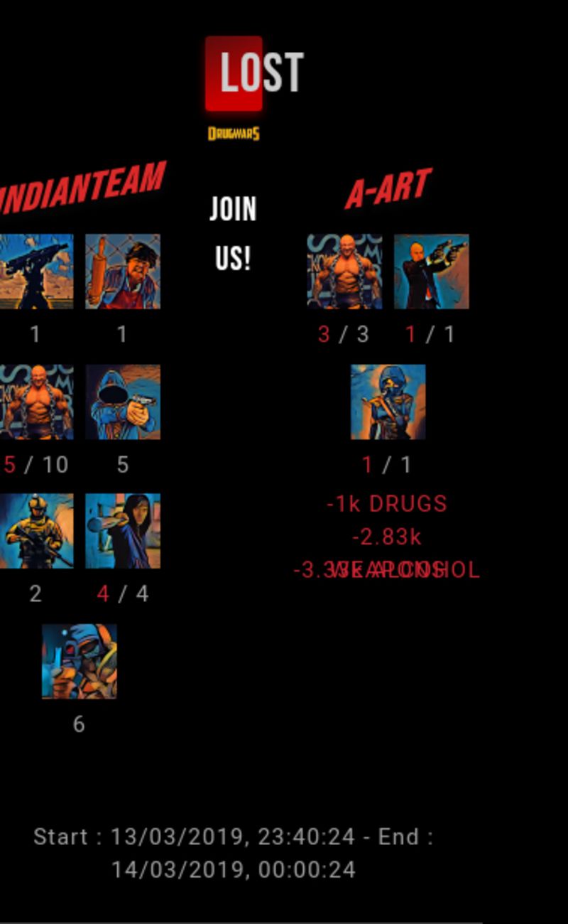 Check my latest fight ! indianteam vs a-arta-art (12)in #drugwars-fight • 7 years ago #gaming #fight #dw