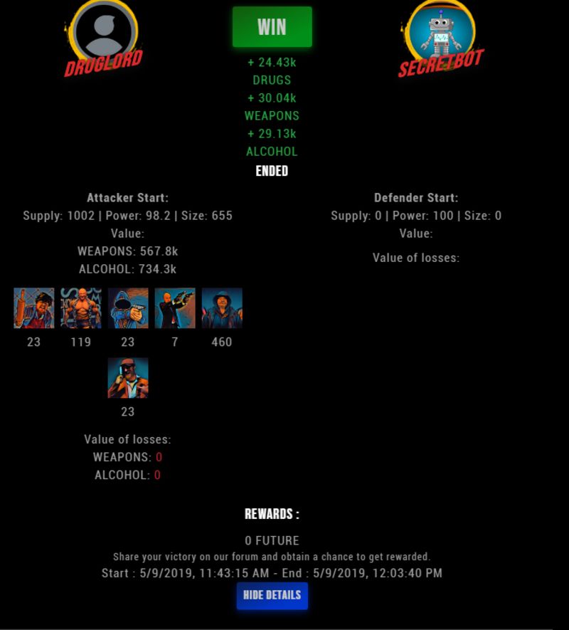 Congratulations @aaron7 ! Your fight received an upvote of 3.7% from the King Dealer as incentive for your activity and as a gratitude for your support to the game.