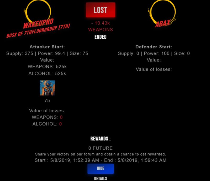 Congratulations @abax ! Your fight received an upvote of 2.1% from the King Dealer as incentive for your activity and as a gratitude for your support to the game.
