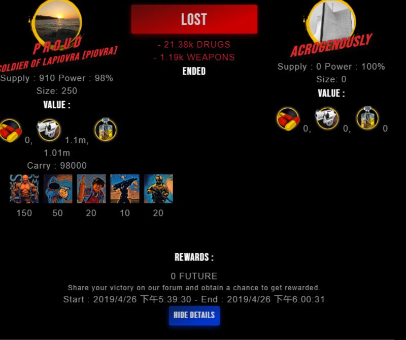 Check my latest fight ! p r o u d vs acrogenouslyacrogenously (26)in #drugwars-fight • 7 years ago #gaming #fight #dw