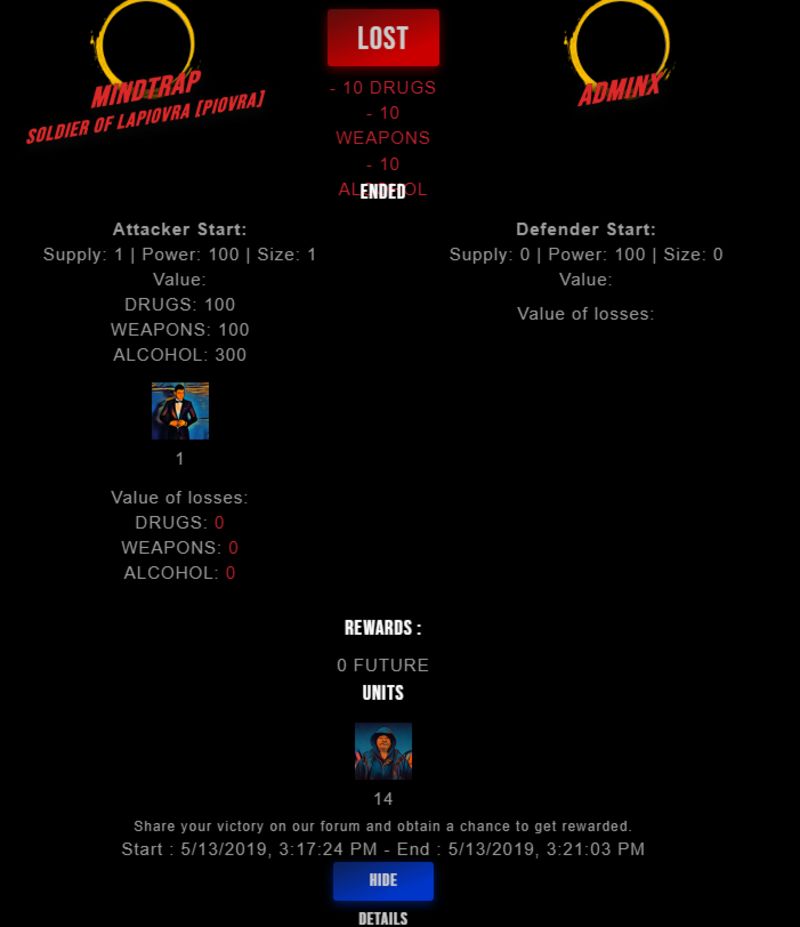 Check my latest fight ! mindtrap vs adminxadminx (49)in #drugwars-fight • 7 years ago #gaming #fight #dw