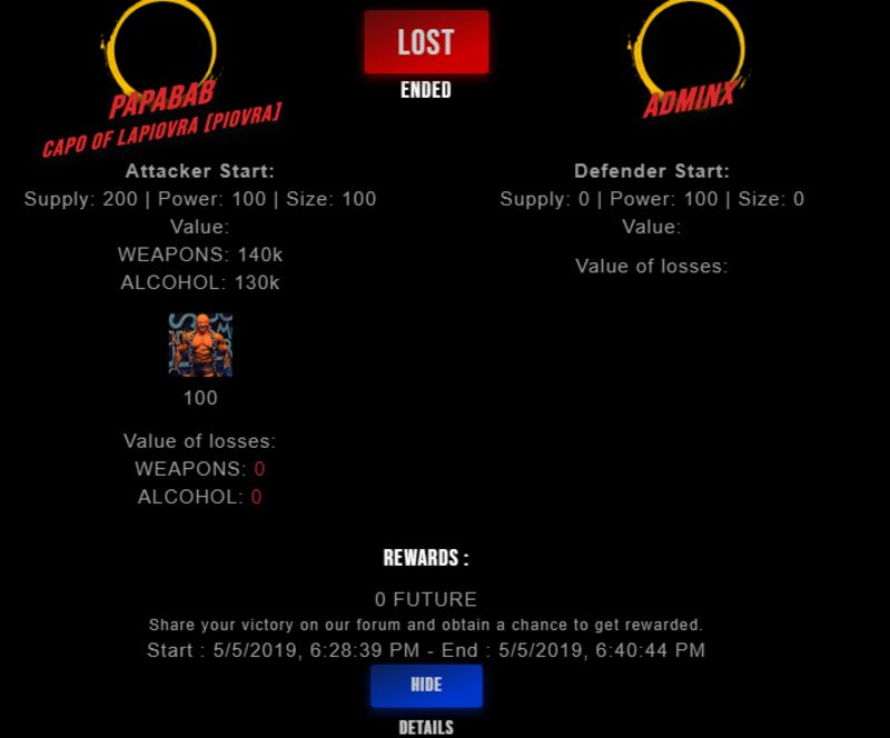 Congratulations @adminx ! Your fight received an upvote of 2% from the King Dealer as incentive for your activity and as a gratitude for your support to the game.