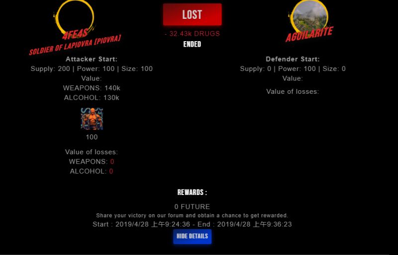 Check my latest fight ! 4fe4s vs aguilariteaguilarite (25)in #drugwars-fight • 7 years ago #gaming #fight #dw