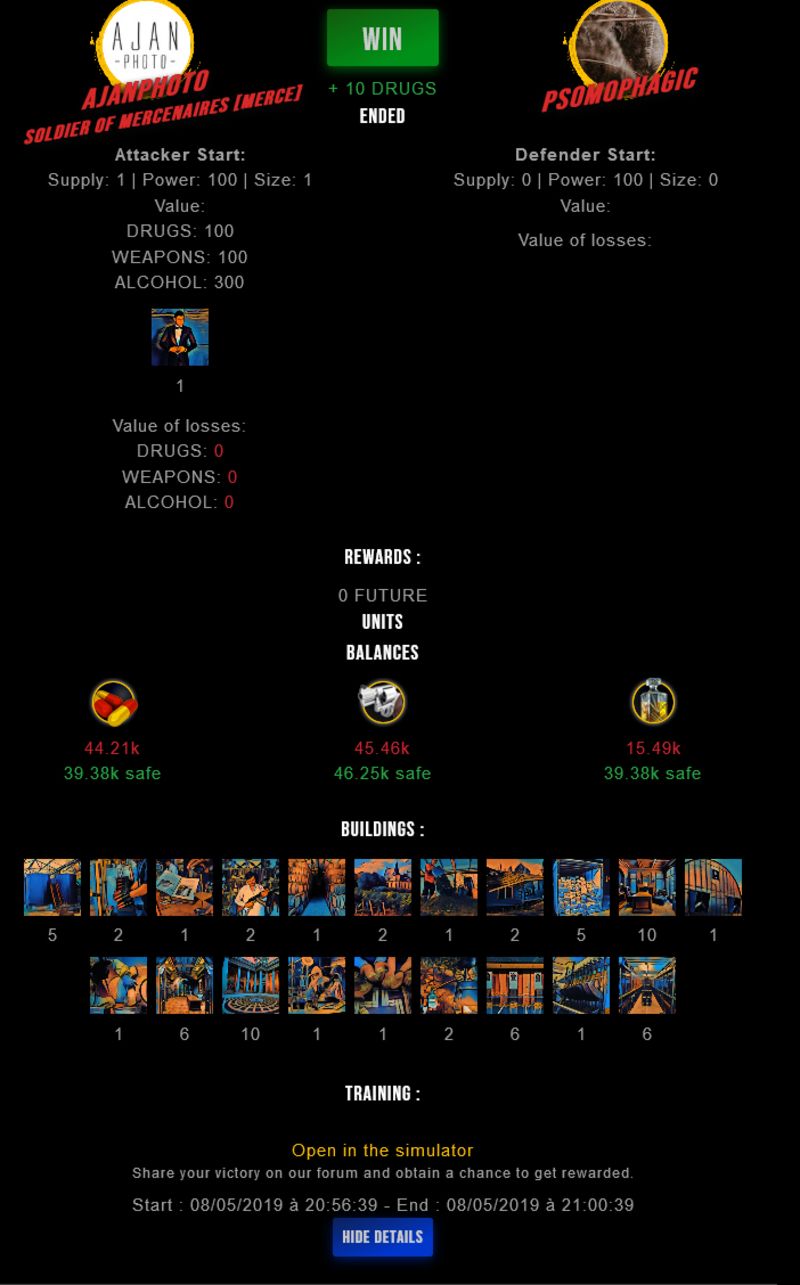 Check my latest fight ! ajanphoto vs psomophagicajanphoto (63)in #drugwars-fight • 7 years ago #gaming #fight #dw