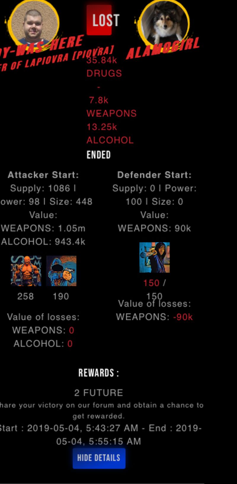 Check my latest fight ! ady-was-here vs alamogirlalamogirl (30)in #drugwars-fight • 7 years ago #gaming #fight #dw