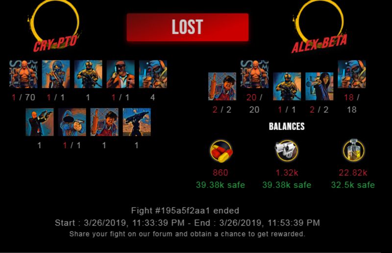 Congratulations @alex-beta ! Your fight received an upvote of 1% from the King Dealer as incentive for your activity and as a gratitude for your support to the game.