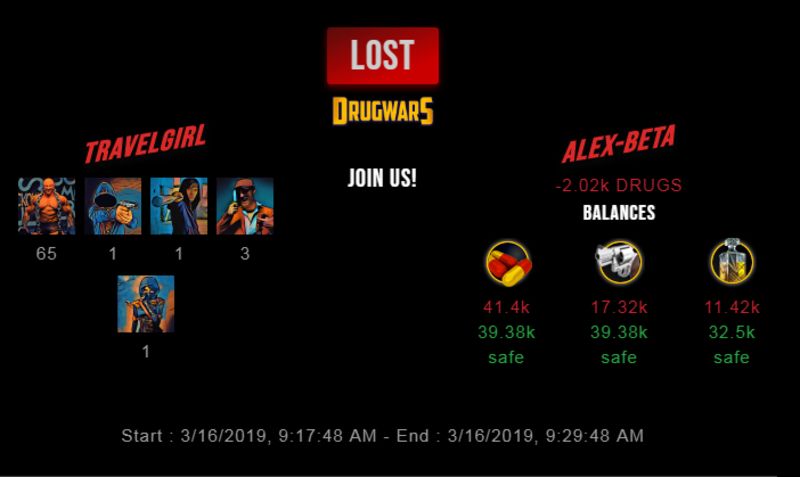 Check my latest fight ! travelgirl vs alex-betaalex-beta (41)in #drugwars-fight • 7 years ago #gaming #fight #dw