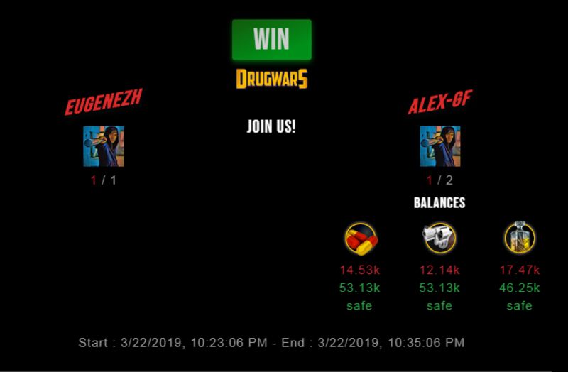 Check my latest fight ! eugenezh vs alex-gfalex-gf (42)in #drugwars-fight • 7 years ago #gaming #fight #dw