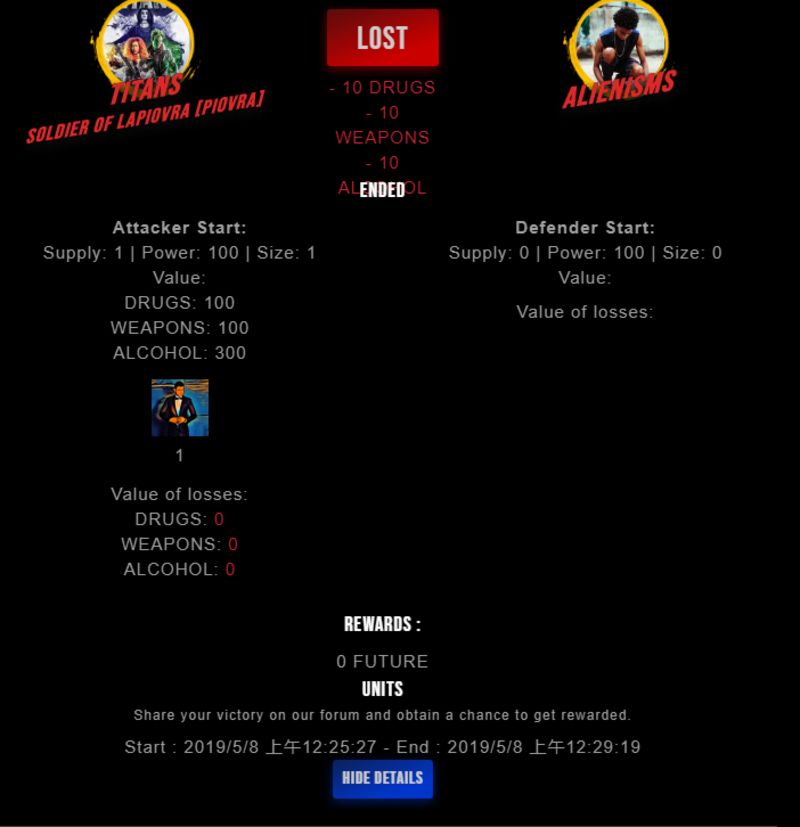 Congratulations @alienisms ! Your fight received an upvote of 10% from the Dealer as incentive for your activity and as a gratitude for your support to the game.