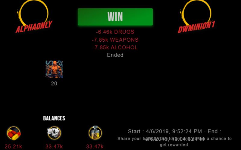 Check my latest fight ! alphaonly vs dwminion1alphaonly (42)in #drugwars-fight • 7 years ago #gaming #fight #dw