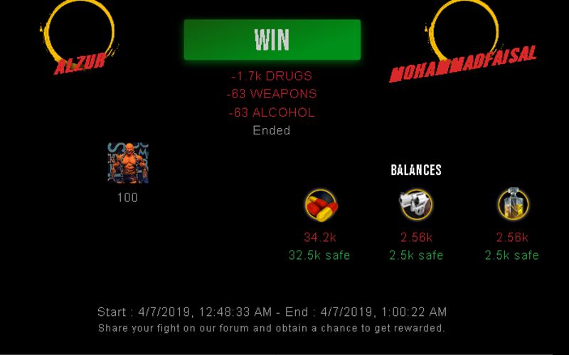 Check my latest fight ! alzur vs mohammadfaisalalzur (36)in #drugwars-fight • 7 years ago #gaming #fight #dw