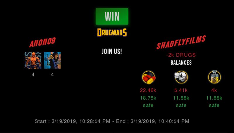 Check my latest fight ! anon09 vs shadflyfilmsanon09 (35)in #drugwars-fight • 7 years ago #gaming #fight #dw