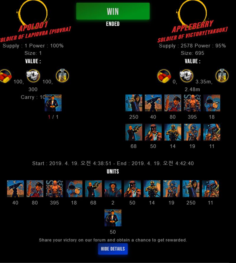 Congratulations @appleberry ! Your fight received an upvote of 2.4% from the King Dealer as incentive for your activity and as a gratitude for your support to the game.