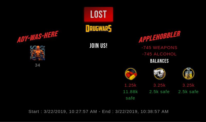 Check my latest fight ! ady-was-here vs applehobblerapplehobbler (27)in #drugwars-fight • 7 years ago #gaming #fight #dw