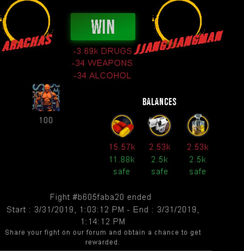 Check my latest fight ! arachas vs jjangjjangmanarachas (36)in #drugwars-fight • 7 years ago #gaming #fight #dw