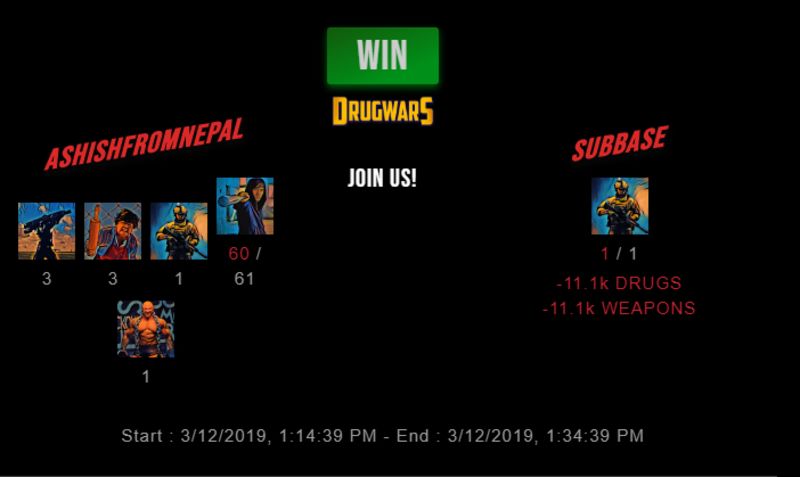 Check my latest fight ! ashishfromnepal vs subbaseashishfromnepal (50)in #drugwars-fight • 7 years ago #gaming #fight #dw