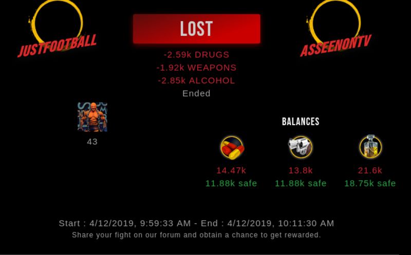 Check my latest fight ! justfootball vs asseenontvasseenontv (29)in #drugwars-fight • 7 years ago #gaming #fight #dw
