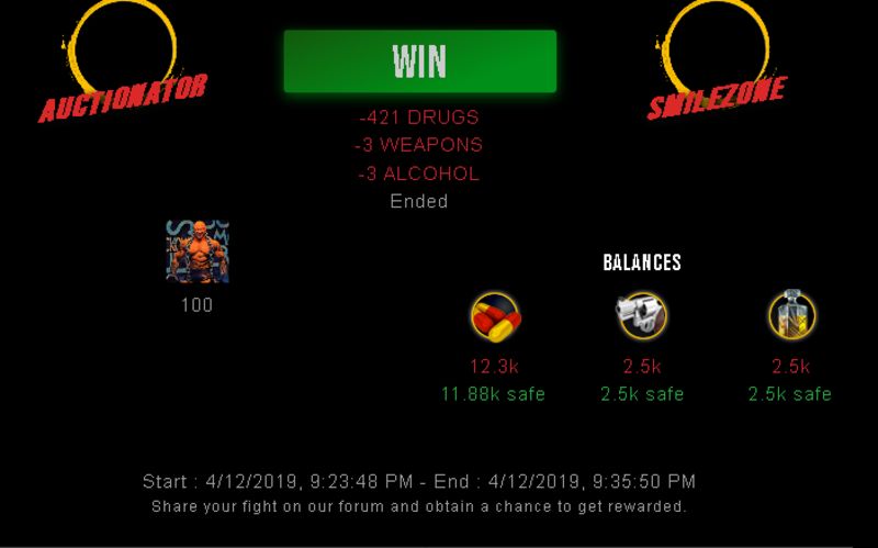 Check my latest fight ! auctionator vs smilezoneauctionator (64)in #drugwars-fight • 7 years ago #gaming #fight #dw