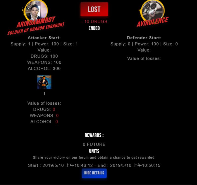 Congratulations @avirulence ! Your fight received an upvote of 10% from the Dealer as incentive for your activity and as a gratitude for your support to the game.