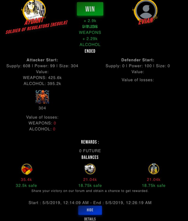 Congratulations @aydant ! Your fight received an upvote of 2.5% from the King Dealer as incentive for your activity and as a gratitude for your support to the game.
