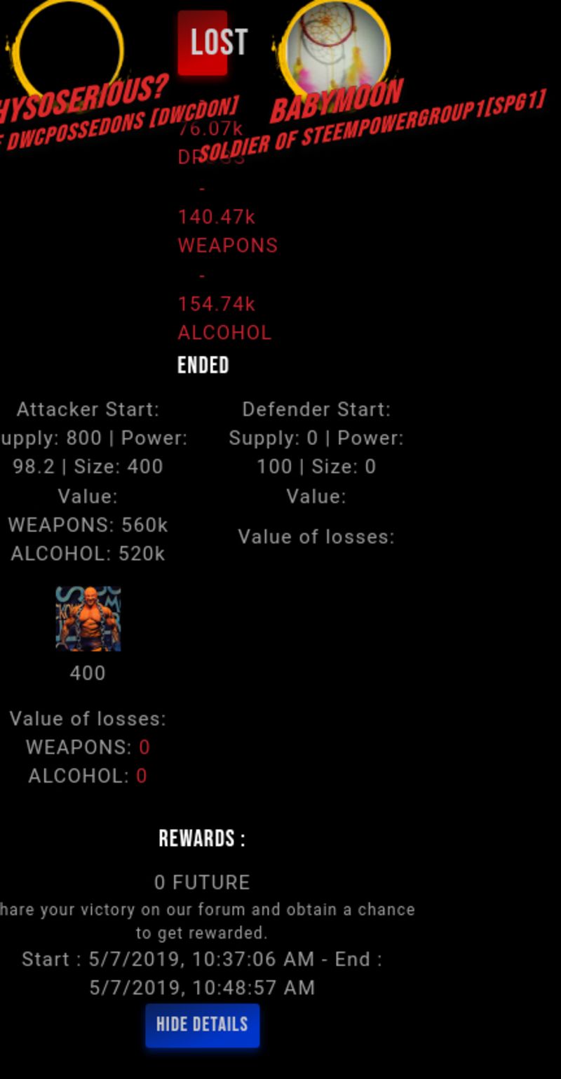 Congratulations @babymoon ! Your fight received an upvote of 11% from the Dealer as incentive for your activity and as a gratitude for your support to the game.