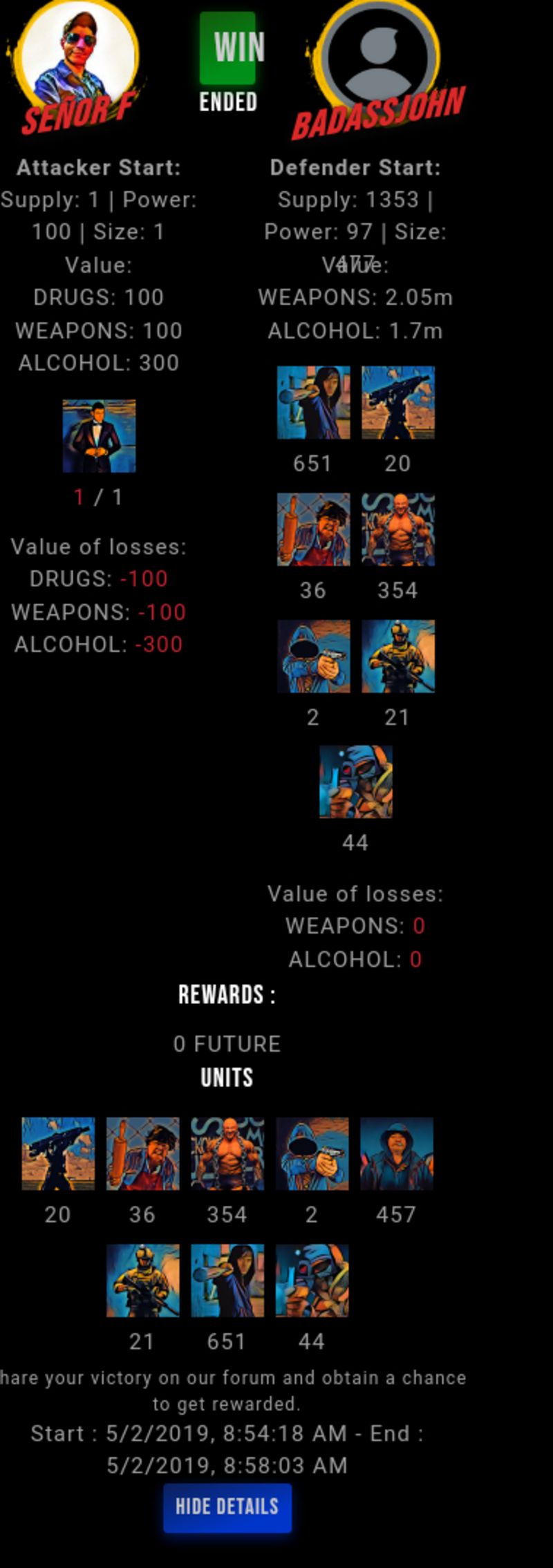 Congratulations @badassjohn ! Your fight received an upvote of 2.5% from the King Dealer as incentive for your activity and as a gratitude for your support to the game.